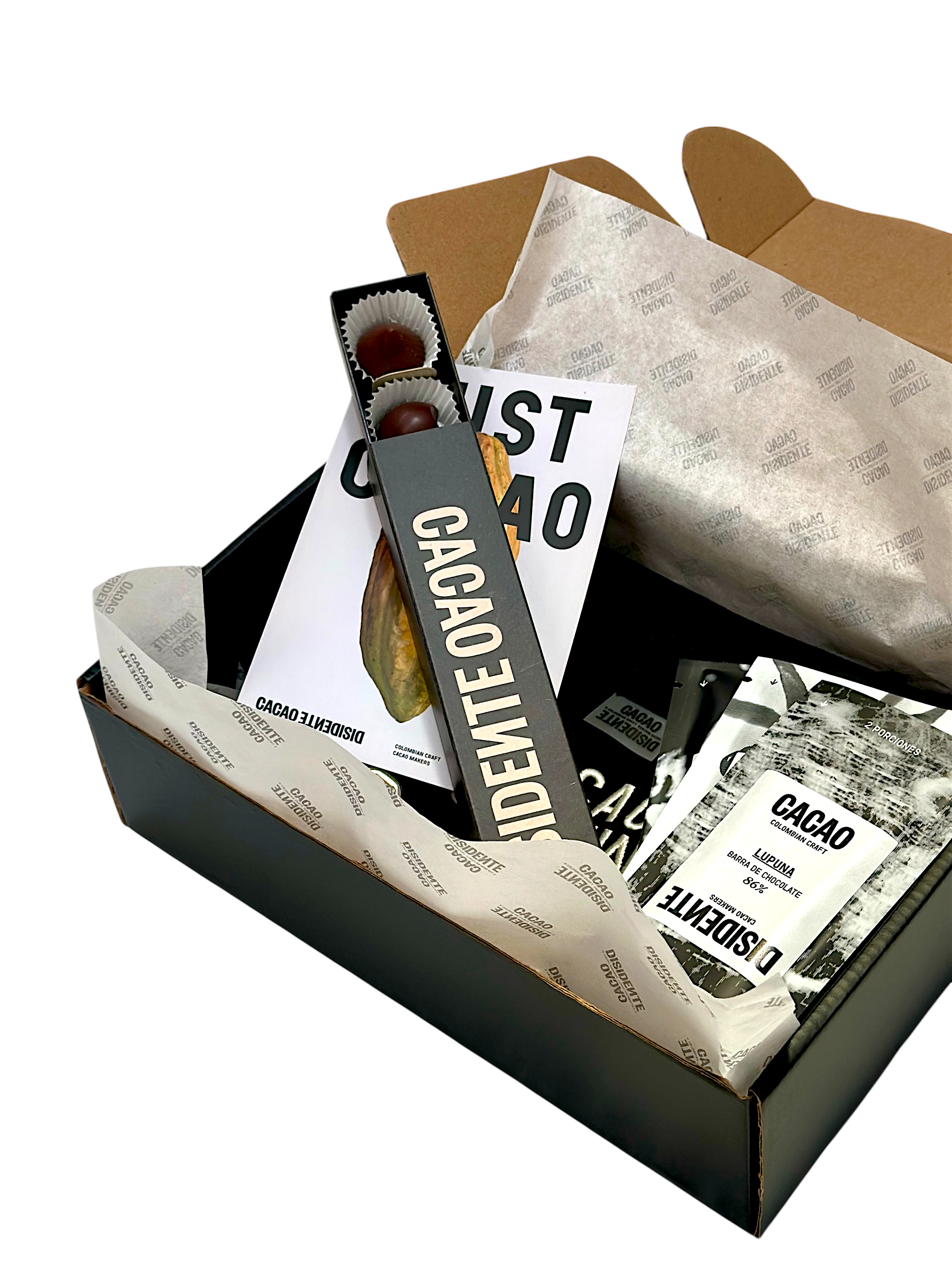 Cacao Disidente es una marca colombiana comprometida con transformar la manera en que el mundo experimenta el cacao. Nos especializamos en ofrecer productos de alta calidad elaborados con cacao proveniente de pequeñas comunidades de productores, garantizando prácticas sostenibles y comercio justo.